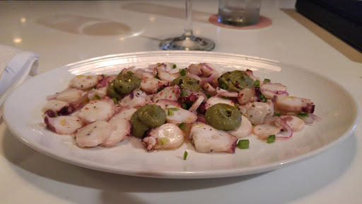 Idk why this crap ass has a nice review restaurant but one thing I can ensure you is that if you are from Spain, you will HATE it. This people has clearly not clue about Spanish cuisine, and probably has never ate real Spanish food, right away Im gonna tell you, that their paella is freaking pistachio green instead of the clear BRIGHT YELLOW that its supposed to be, but it doesnt end on the disgusting look but the flavor tasted dead, rice was simple and the sea ingredients were poorly washed, for a place as expensive as this, its rather pathetic. But does it end there ? Absolutely no. We can go from a poor excuse of a paella, to a flavor less meat that for no reason 5 small slices of medium rare flat iron took 40 min to make, by the time my companion finished eating I start it because " they dont hold back food." Overall this place is an insult to Spanish cuisine, food taste dead, and really the only way you can like this is because you simply dont know any better. Enjoy.