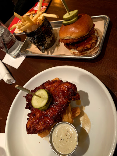 Food is decent. Pub food. Martinis are often way too sweet. Good promotion of craft beer, especially local craft beer. This location is often busy especially during football season. Nice outdoor area, staff is not very helpful, rude at times.