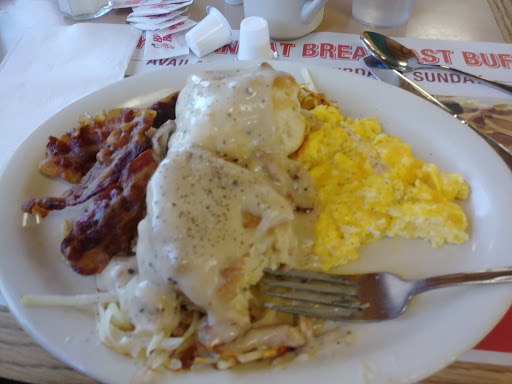 To start off my pancakes had hairs on them. They made my order and sons order wrong. They took the eggs off his plate and put them on mine added a cold sausage patty to my plate. The restroom was a nightmare and the bill she gave me was covered in gravy