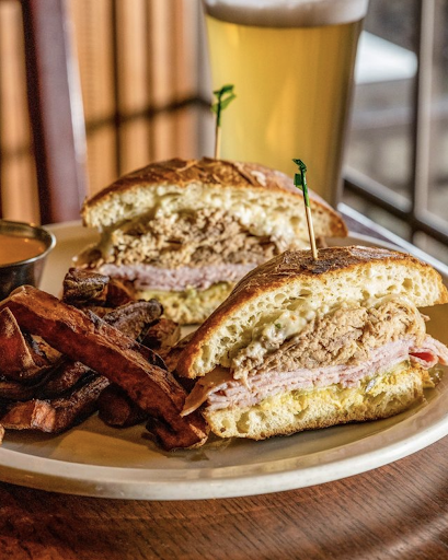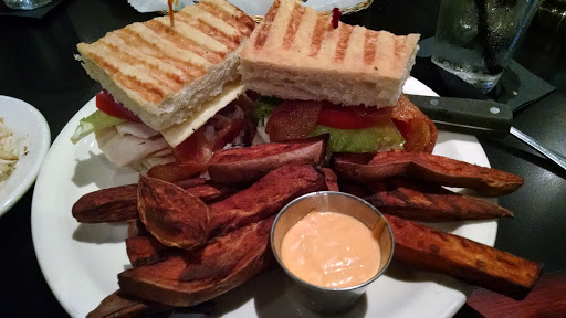 Good food and drinks, limited selection of beer on tap. Good service. Nice seating area. Ample parking, adjacent to Cinema. Fairly loud. Bar is typically full at Happy hour. Friendly bar staff, slow food. Happy hour specials in the bar area only. Outdoor seating in the bar area only. They have a room in the back for parties only, but I think it needs to be specially reserved. The wall opens up for summer, which is fairly interesting.
