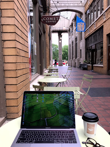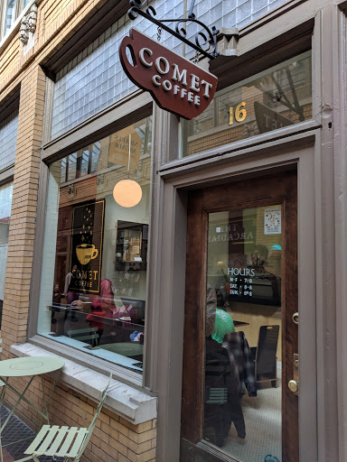 I rated this place five stars awhile back, but, being Comet, I really felt it deserves its own review. Put simply, Comet sets the bar to which I will compare every other coffee experience I have. Its just that good. Theyve usually got three or four different single origin coffees available to choose from plus an espresso. Every time I come here to try coffee, its been so good-tasting and memorable that I would have bought the bag of beans right then and there if I thought I had the right equipment or skills to make it at home. (Please, teach me your ways!) I tried once, coming in because I remembered one of the best coffees Id had (I think it was the Aramo, from Ritual?) and the barista working managed to find a bag of it in the back for me when I asked about it, but unfortunately, I couldnt recreate the Comet magic at home. Aside from their fantastic pour overs, I had the single greatest espresso Ive ever had here as well. I dont remember where it was from, but this had to be the most flavorful, least bitter or sour, most amazingly delicious little cup of coffee Ive had, and trust me, Ive had a lot. Not to mention the delicious pastries and really interesting teas they also carry, if thats your thing. The design of the space is really clean and cool, and theyve got some really interesting custom-made furniture in there. Nickels Arcade is just such a great location for this type of shop. Do yourself a favor, and dont get your coffee to go-- just let it cool down a little, sip slowly, and enjoy the atmosphere ---but that might be hard-- its a small space, and its popular for a reason. Ive never had to wait an unreasonable amount of time here, though. Theyve got wi-fi, but no outlets if your battery is running low, and I dont blame them. This isnt really a place to plunk down and study for a few hours, due to its sheer tininess, and I think they have a few laptop-free tables to discourage specifically this. Besides, how could you even focus with coffee this good?