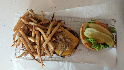 The food is mostly average but more expensive than its actual value. They manage to make their fries slightly crisp on the outside but somehow squishy on the inside. The texture lends itself to being gross once youre actually eating them. The burger suffers in the sense that the beef quality cant stand on its own. The beef is dry and tasteless. The entirety of my burgers flavor came from the BBQ sauce and cheese. Ultimately after the price of my food and the quality I would recommend you seek a five guys out immediately. Most lower priced restaurants would give you a greater cost to quality ratio. The establishment itself, at least the Plymouth location was clean and tidy with a somewhat industrial design, no faults there. Summary: overpriced for mediocre at best food.