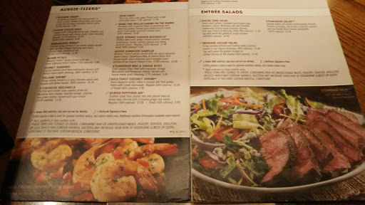 Outback steakhouse used to serve more than three different steaks, didnt they? Food was meh. Got the "grass fed" burger. Asked for medium and got well done. Bun was less than fresh. Ribeye melt was also well -well done and gristly. The only reason we didnt complain was because w had gift cards. Waitress was nice though. Its been 14 years since I had been there and I was very disappointed it had gone downhill so much. I dont think its necessarily this particular Outback but the franchise in general. Too bad.
