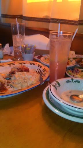 Olive Garden may have a bad reputation for being cheap "Italian" food but Ive still yet to have an experience that wasnt mostly positive, and this one was no exception. The staff here during my visit was overwhelmingly helpful and courteous, and the food was surprisingly good. The only real reason I have to knock this restaurant is their tendency to push wine upon you the moment you sit down (not that theres anything wrong with wine, but if I want some, Ill ask), along with these new kiosks at the tables that allow you to play mobile games at the dinner table. Nothing against mobile games, but having this screen at the table thats always on and egging you to pay a few bucks to play some games or start a trivia session... well its distracting and seems kind of absurd. I will say, however, that being able to use this little screen to pay via credit card and have your receipt printed off without having to wait or leave the table is wonderfully convenient, so its not all bad.