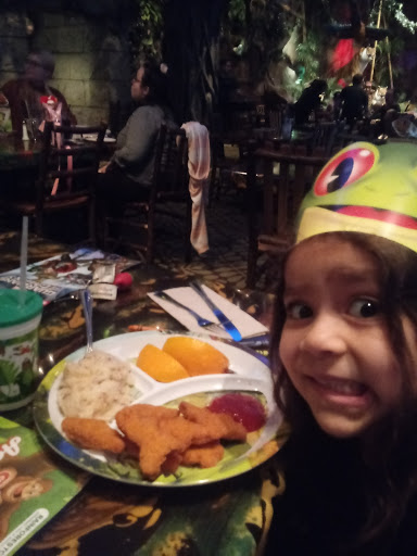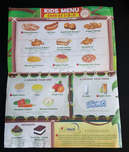 Well we never got to eat here because they would not allow us to bring in a stroller.. this is not a family friendly place. I never had an issue with ANY restraurant with allowing strollers.. usually they just move one chair and we put the stroller there, thats it. We have NEVER left our stroller out in the way of other customers and staff..we were also shopping in the mall so of course we had a stroller.. and our little guy is a baby, not a toddler thats capable of even walking or sitting up yet in a high chair. I think by the time we got done arguing with them at the entrance they were going to seat us near the entrance but that was no fun.. we wanted to be by the animals, this place will never get out business and I have never encountered such rude service like this anywhere.. I could understand if most restraurants had a no stroller policy but never been anywhere that did.. I am not going to leave our stroller outside of the place so it can possibly get stolen.. no way! I am going to make sure this gets out there and spreading the word about your terrible customer service and policy!!!