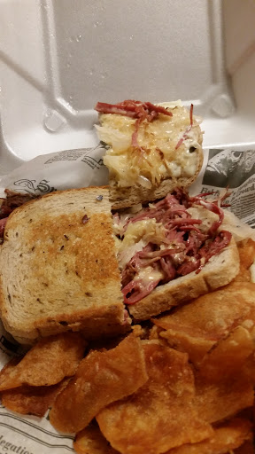 Surprisingly busy on a Tuesday night. I live in Chicago and was looking for exactly this. Has a bar, people talking, glass clinging, food was good. Atmosphere. Sat in the bar are and bartender did a great job of greeting quickly. Had a Ruben, could have used a little more meat but it was good. Homemade chips were a little over seasoned, but I was drinking a beer so all is good. When I am back in Battle Creek I will visit here for sure.