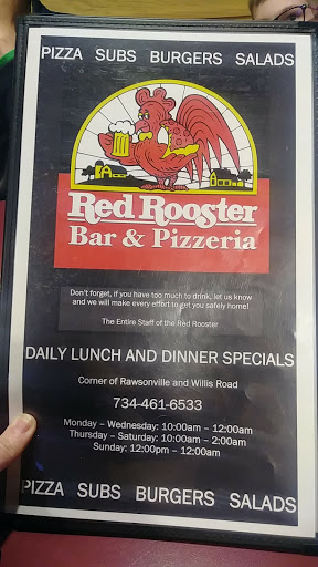 Me and my boy love stopping in to see ms.sue at lunch time. She always is real nice to my boy. Rooster is got a great menu and pizza is great to. And they serve is half off on mondays u cant beat a large 3 topping pizza for 7 bucks. The only neg I could say about the place is the karoke guy on Friday nights always has a bug up his butt. And if u wanna see anymore about the place just stop in there and find out. Make sure to post a review so people know ur view too...