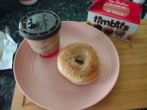 My husband and I stopped at Tim Hortons on the way to the airport, and they messed up our order of two sandwiches and coffees... The food tasted fine, but because they couldnt get a two piece order correct, I havent been back.