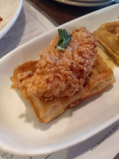 I really should knock this down to three stars because its declined quite a bit. What keeps it at a steady 4 star is that its good to know that a restaurant that feels often line a Fridays or Applebees, isnt because they serve only things sources in Michigan. When they first opened you couldnt go wrong. Fantastic service, killer food, amazing beer selection and weird and slightly disturbing pictures of Roosters everywhere. Since our favorite server left Ive noticed that each time we go the service is less and less and so is the food. The fish tacos are still incredible, but I ordered the Fish and Chips which are always good and battered in a Founders Pale Ale batter and received the fish Bits that should have gone in fish tacos. Over salted and tiny meaning I had more batter than fish. They have a Kobe steak which anyone who eats or looks for good steak knows a Michigan only restaurant doesnt have real Kobe. All that aside do yourself a favor, go before 6 and get in on the happy hour deals. Its a good thing. The Southwest Nachos which are not Nachos at all are seriously worth eating. They are Waffle fries topped with the house queso, chicken, Pico de Gallo and fresh jalapeños. With your entre get a side of Mac and cheese that will make your happy little heart sing. The rest, take for what it is. Youll find a few more gems like the Dr. Pepper pork Lollipops and the ribs, but lets face it. Its turned into a hopped up chain restaurant.