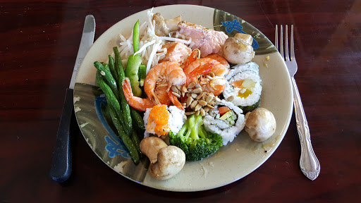 Good food on buffet ready to eat, or pick your ingredients to be grilled up while you wait. Reasonably priced. Some sushi but not much "real" sushi. (with raw fish) One of my favorite lunch destinations.