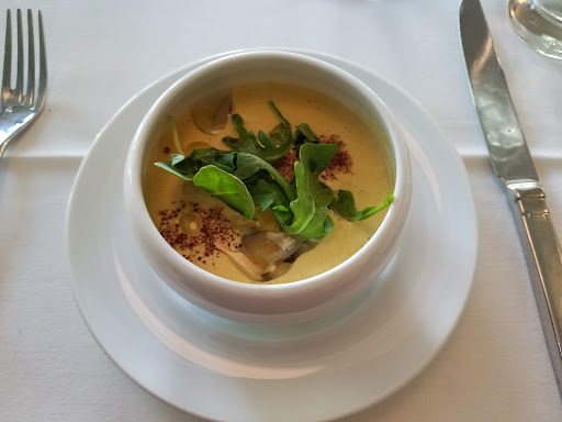 My wife and I went here for our anniversary. I was expecting to pay more than I received and thats exactly what I got. Maybe its having a great sommelier (Eric) is what doubles the cost, although he did double as the waiter. The atmosphere was good, the hostess very nice, the food great and and so was the wine.The sommelier was able to find a good choice for each of us and seemed very knowledgeable. We both had a beet salad; I had the ribeye and she the Alaskan halibut.Warning: the entrees do not come with a vegetable. We each had a glass of wine ($16 each) and SHARED the creme brulee for desert. Out the door, it was $160. So if you expect to pay double what you expect, are on a business account, or very well to do; this is the place.