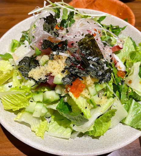 I just ordered the chirashi bowl, and it came with only 3 different types of fish, a shrimp, and a raw egg. All of the cuts of fish were small, and very jagged. The bowl came with just a bowl of miso soup, no salad. The price wasnt listed, and I was shocked at 18 dollars. I also ordered a spicy Tuna roll, which was very small and 6 dollars. I would never go back. Way too much cost for way too little food.