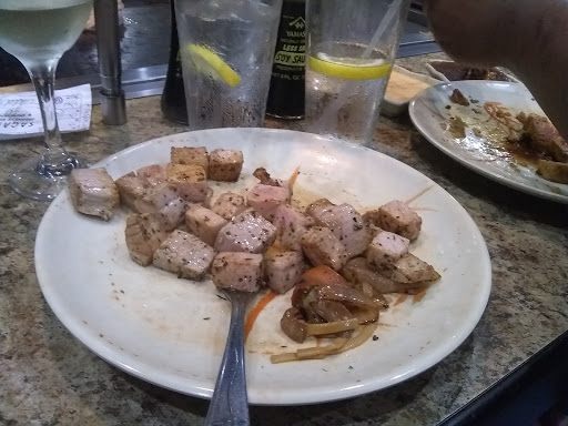 Undercooked chicken ruined my belly. There was a bit of a wait but thats ok because we hadnt made reservations. Once we were seated there was no waitress or cook for about 35 minutes. They were all so very kind, even the cook gave us a great show. While eating I felt like something just wasnt right with the chicken. We usually take our food home after the show, so after a few bites thats what I did . When I got him I really didnt need to warm the food as it was still hot but I began chewing on a very rubbery piece of chicken, I show my boyfriend and he says its just chicken fat and tosses it. But I remember seeing no fat before the chicken was put on the flat top. Unfortunately throughout the night I had a terrible belly ache, even woke up feeling a bit nauseous and clammy. Come to find out my boyfriend isnt feeling well either. We check the chicken and most of it isnt done. I believe the cook was so focused on entertaining us, and finishing up because we were the last table to leave. I wouldnt say that I wouldnt go back. But never so close to closing time again.