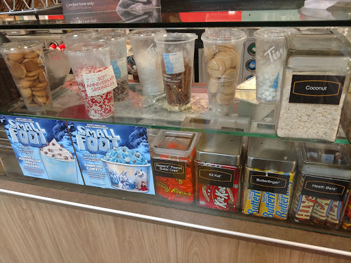 Very poor service, we were the only ones here and waited for over five minutes before having to flag down someone from the tim hortons side, who let me know after asking them that someone would be right with me. Another few minutes go by and someone from the tim horton side reluctantly comes over, grabs some spoons and looks at us. No greeting, just a vaguely annoyed stare. On top of that, they mixed my cake batter ice cream on a spot previously used for chocolate. Very unhappy with this location.