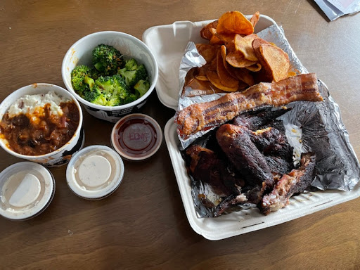 Good people. Terrible attempt at bbq. Greasy brisket. Tastes like boiled meat with grease. Mac n cheese is greasy n overpowering. Lacking drink options. No 2liters or fountain drinks. Do any bbq places use smokers or cook with wood. Just like the place down the road from them who also boils then uses artificial flavor for the meat. You cant fake bbq n smoked meats with flavor adders. Please do the right thing and make good food. Nice building a decor inside. Good food equals 5 stars. I will check back soon and update.