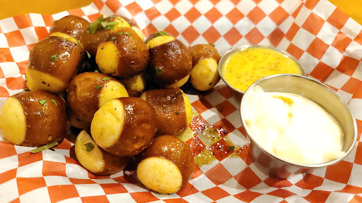 So many things wrong with this place that I truely dont know where to start. 1) Music is too loud for this tiny place. 2) If you wanna come have a beer OK thats probably alright but DO NOT order food. Portions are ridiculously small. 3) Soft pretzels were brought out, the server had a plate then they put down a napkin and set it down right there no plate then to make things worse they slice a piece of cheese and plop it on your napkin like wtf. 4) Every order was missing something weather it be a pickle or bacon or whatever, or if you ask for no onions, they go ahed and toss some in anyway. 5) No refills. Theyre free but nobody botheres to refill your cup. 6) You can buy a mug and theyll refill it whenever you come back. (Good idea) But it costs $100 are you kidding? Dead serious. I wish I could rate this place lower than 1 star.