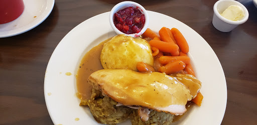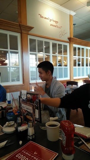 The restaurant was cold, my food got cold to fast, in short I froze in there. The company talks about "Farm fresh" food. NOT. My potatoes were instant, the green beans were canned, and the country fried steak was ground beef. The breading was soggy and was swimming in grease. I think you are supposed to let it drain before you put it on the plate. And it is supposed to be steak not ground beef. I believe it was frozen when they deep fried it. Thats not how you do country fried steak. The butter for the biscuits wasnt butter at all, it was some kind of soybean spread. For what I paid I could have gone to Cracker Barrel and got a real meal. I wont be back. On the other hand my server was awesome. She cant help how the food is prepared or how clean the dishes are. The dining room could use a good cleaning. Dust hanging off the fans, and light fixtures.