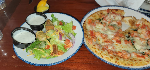 Our 3 hour dinner wasnt planned. We waited, then waited some more. Once we got a table we ordered drinks. That took 25 mins. We got our appetizer before the drinks, then the salads came out. Still, no drinks. We were told 3 times that the bar was backed up even tho we waited for our table in the bar and watched the 2 bartenders having a ball talking to customers like they were friends. THEN once we got our drinks my wife found a label from the bottle in my Margarita. GROSS! Then my wife got the wrong dinner and all chaos was now in full effect. Dont go here. Unless your in your Pjs. Then youll fit right in. Horrible night out.