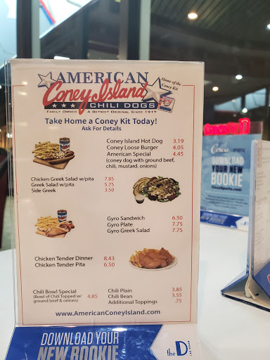 I was just at american coney island yesterday and was not very pleased. I had 10 other people in my party and it took 10 minutes for the waiter to come over and start cleaning off the tables for us. We waited about another 10 minutes for the waiter to come back and take our order. When he came back he told us that we could only get the coney island hotdog, coney loose burger, chicken wings or chili. Out of the 24 things on their menu we could only get 4. The waiter brought our food pretty quickly, with the exception of our drinks. He brought our drinks about 10 minutes after we got our food. I got the coney island hot dog and it was pretty good and my fries were okay. When you looked on the floor it looked like they never sweep or mop the floors. While we were eating the people next to us left, this was when we just got our food, the waiter never while we were there cleaned off their table. I wouldnt be suprised if i saw a rat run across the floor.