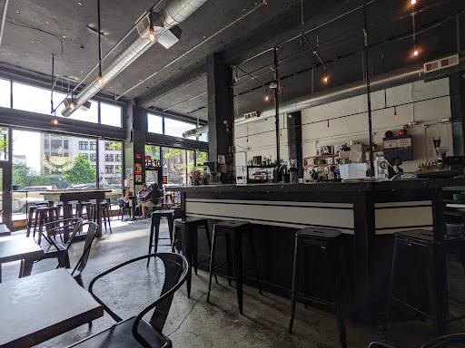 This is our go-to coffee shop near our apartment and we love it dearly. Its decor is industrial and hipster and kind of feels like a renovated 1950s muffler shop on the inside, allowing us to think that were significantly cooler than we actually are. Its spacious with plenty of seating, although be sure to grab one of the five or six spots near a charger if youre planning to work on a laptop. The staff is friendly and quick: we always receive our coffee or tea quickly. The only time that something went wrong (they forgot to put in our order), the manager felt terrible and gave us our drinks for free, even though were regulars. They also have a variety of delicious fresh pastries that you can order. Ive had the cheesecake and chocolate chip cookie and highly recommend both. Their pourovers are tasty and recommended, as is their cinnamon latte. My only slight qualm is that occasionally the music is pretty loud, which can make it hard to work. From what I can tell, this usually happens more in the evening. Overall, Id definitely recommend this place to anyone looking to get some work done or catch up with a friend over coffee.