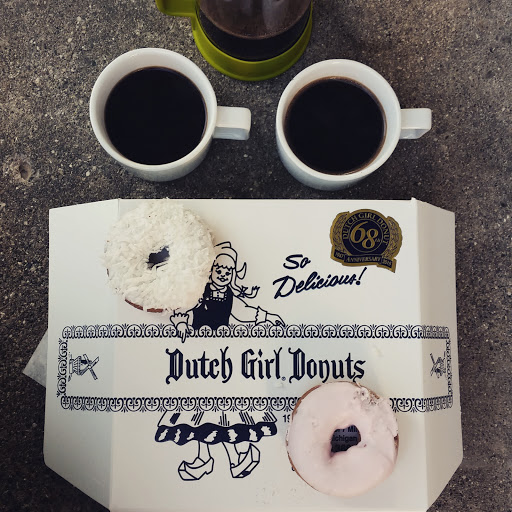 Elusive donuts that worth the trip to a sketchy neighborhood. Dutch Girl runs 24 hours until the run out and the next shift starts. Fortunately, we live 5 min away and 8/10, theyre closed. But when theyre open, youll forgive them all the times their neon sign was turned off and doors locked. The best donuts are the peanut covered cake ones, especially when right out of the fryer and freshly dipped. The prices are great, and over time, youll get over the bulletproof glass.