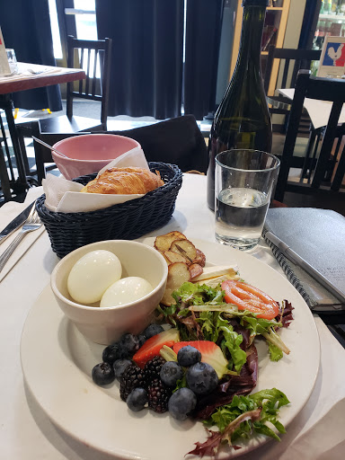 We liked our impromptu lunch well enough after driving past. The outdoor patio portion was nice, but I wish it would have been slightly cooler outside to be comfortable. The chairs on the inside need a little bit of loving, because when they get pushed on the floor, it shrieks something terrible. But, the service was a touch slow, but I suppose that can be chalked up to the type of place this is. I had the eggs with the brie, fresh fruits, potatoes, and croissant. It was a marvelous meal, but the reason this place is a 4 and not a 5 was the eggs. They were just super plain in comparison to the rest of the meal. Had they some sort of flavor, that would have been amazing.