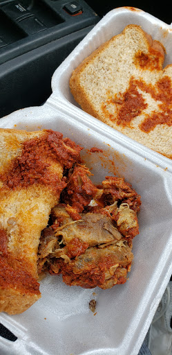 Hubby got a coupon for this place and it is way off our beat so we almost missed it! That would have been too bad. I finally found my way down there today and picked up a carryout. Its on the east end of Brush Park. Note, carryout is pretty much the rule. They do have a few utilitarian tables in a little room they made from half the floorspace. My coupon was for rib tips for two. I was given a choice of three sauces, regular, sweet or hot. I picked hot. The four sides looked kind of skimpy for two, but actually were just enough -- Greens, beans, potato salad. Nothing special there, but perfectly adequate. Four slices of a good home style wheat bread were also included. Then I saw the MEAT! Wow! I got two of the small type styrofoam sandwich boxes full of rib tips. They were really heavy, just stuffed with the meat. I was given two extra little tubs of sauce. Good thing, that sauce is delicious! Just a hint of vinegar, not too much, and it is dark red with paprika, a really good paprika. The heat was just right for my somewhat wimpy palate. We warmed up the food a couple hours after I got it. The meat was in pieces, no bones, but had a few bits of gristle, with some tough and some tender pieces of meat. It was well coated with the wonderful sauce and of course, we added more, Not too messy because we could use forks to eat it with. We loved it! We two finished just over half the one box of meat and all the sides. We did not touch the second box and we saved some sauce, another great meal for tomorrow!