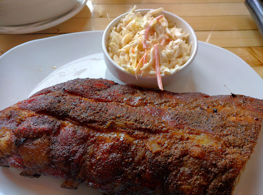Heres a bit of background info: I love BBQ, Im a food snob, and Ive dined across the USA and Canada. After seeing all the hype for this restaurant I really wanted to try it. The wait was an hour so we went to the coffee bar/cafe next door which had a killer cappuccino. When we were called we overheard the wait was 2 hours now. Shortly after sitting down we were very impressed with the large beer and alcohol selection. Food was served very fast, which should be the case when there is a large volume of people. To start we ordered a Cesar salad, which was abysmal. I was happy to see romain lettuce instead of the cheaper iceberg, but the flavors were not distributed at all. I dislike fish and was disgusted when I got a bite of fishy salad (yes I know Cesar has anchovies/sardines). After more examination we realized that the salad had not been properly distributed leaving some ultra fishy bites and some not so dressed bits. Salad aside, the baby back ribs were good after being slathered in sauce. Im assuming the concept of slows is a dry rib covered in sauce. At first when we tried different sauces in moderation I noticed that the ribs were pretty dry, probably because they lacked huge fatty bits. The sauces were all spectacular, but Id say the ribs are no better than subpar. We tried the applesauce which has many raves online- after one bite I was disgusted. It came cold with a whole slice of apple sitting in it, after which the server said it could be hot. It tasted "like dirt" in my bfs words. I make applesauce and I was pretty disappointed. The waffle fries are exactly like those of chick fil-e, not too impressed here. We also ordered a side if Mac and cheese which our waiter neglected to bring. The cornbread was dry. Overall I wouldnt go back, its virtually the same thing as famous Daves. The only differences are the beer selection, wait, prices, and atmosphere.