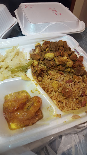 The food here is pretty good. I recommend calling ahead so your food can be ready when you get there, give them at least ten minutes. I generally order food from here about once a week. Sometimes, the food can be a bit salty. Sometimes even though I ask for mild food I get spicy. Sometimes I feel like they skimp on the oxtails a little bit by giving you all small bones. The plantains are nice, I always order an extra side of plantains. When paying with a credit card, they ask for id, even though it is a chip card with a valid signature on the back. The website has some outdated information, including incorrect prices on the catering menu and incorrect hours (they are not open on Mondays.) If you want to order catering make sure to get the correct price when you place the order. There are two small tables in the restaurant, so not really a place you can sit down and eat. I would say this place is really carryout only.