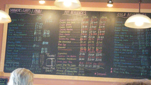 This is the only coffeeshop in the area, and thankfully its a nice place. Along with various coffee drinks, they also serve soda, tea, smoothies, and complimentary self-serve water. If youre hungry, theres a whole slew of sandwiches to choose from, and they come with a side. The BLT is outstanding, and I heard a customer raving about the turkey pesto panini. There are plenty of tables inside or outside (weather permitting). If theyre taken, be friendly and find a seat with a stranger. I noticed two people talking for an hour and a half, laughing up a storm, and heard them say, "It was nice meeting you," as they went their separate ways. It gets a little loud in here when its full, so if youre studying or working, keep that in mind. Free Wi-Fi is always appreciated. The staff is friendly and efficient. And, they have clean bathrooms to boot. Great find!