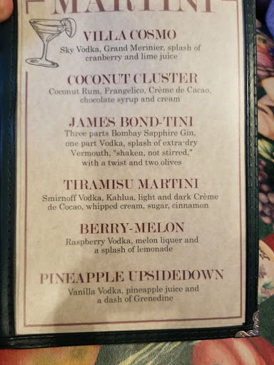 The Villa is a great place for some great Italian food. Youre sure to like what you order, and youre sure to like the bill. Highly recommended! P.S. Dont eat too much bread and or too many breadsticks so that you have room for your entree!