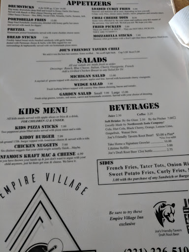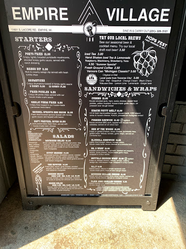 On a recent trip to Sleeping Bear Dunes, we found ourselves to be very hungry and parched after a wonderful afternoon hiking the dunes. We stopped at the Village Inn on the way back from the Dunes and had a very enjoyable lunch. They have an excellent selection of pub style food ranging from salads to sandwiches and some EXCELLENT burgers. Being parched, we also enjoyed some tall glasses of icewater, but found ourselves wanting a little more, so after re-hydrating, we were happy to see an excellent selection of both micro-brews and macro-brews on tap. :-) They have a fair-sized parking lot on site and while the entrance is certainly handicap accessible, it is a small establishment. It might be a little challenging to navigate the tables in the dining area with a wheelchair or stroller. Outside of that consideration, Id highly recommend them for a meal or snack if you are visiting the dunes and looking for a place to get some grub and a beverage. Cheers!