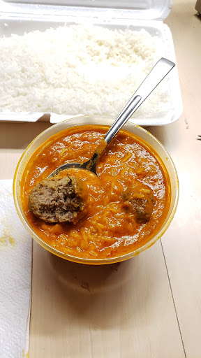 This place is almost always empty, and I can tell you why. I had the same experience here as I did at Saffron down the street. The chicken doesnt appear to be normal...it tastes odd and immediately made me sick as I started eating it (it tastes processed and flat out rotten). Please start using fresh poultry and meat!