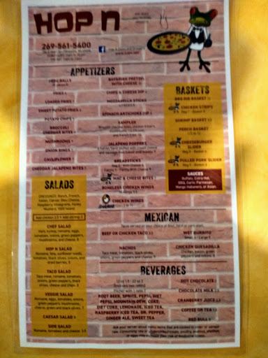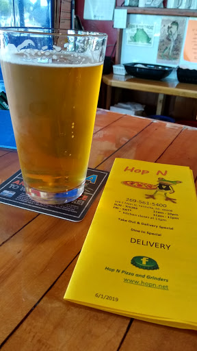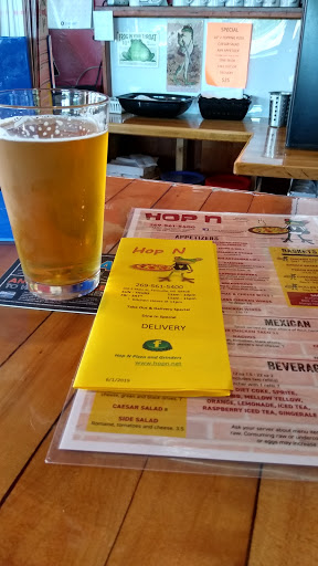 We usually read reviews before going places but we were on-the-go and just stopped in here. We wish we had read the reviews which clearly say to "stay away". Nice atmosphere and clean establishment(bathroom included), but service was pretty bad. Seat yourself restaurant/sports bar and it took a few minutes for a server to get to us, which we sat at the table right in front of the bar where several workers were at and hanging around. Ordered a water and a rootbeer. Got spinach and artichoke dip for appetizer, "Hopn burger" with substituted onion rings instead of chips, and a 16 "Hopn garden" pizza. Took forever for our appetizer to come out and had about 4 minutes to work on that before rest of food came out. I will say the spinach and artichoke dip was VERY good, best weve had so we cut them some slack on the time it took for it and was looking forward to good main course meals. By now our drinks were gone. Pizza looked delicious and was pretty tasty, but the burger was NOT good. The menu had stated the burgers came with a pickle and I specifically asked the waitress for no pickle on the burger or plate anywhere. I also asked to get tomato added to the burger. No choice on how the burger was cooked. Burger was very well done and dry, with bad quality meat. No tomato. Pickle spear on the plate. Waitress came back and saw pickle I had off to the side and apologized saying she told kitchen not to put a pickle on. Okay no biggie. She leaves quickly embarrassed. Still no drinks. I notice no tomato on the burger. Was surprised how bad the burger was in general since its their house burger. Boyfriend tried a bite and said it was nasty and he is the opposite of a picky eater. She comes back a second later with the bill saying "no rush on this". Onion rings were good. We finished eating and sat for 5+ minutes before another worker came by to ask if we wanted boxes. Our waitress was visible our whole meal, hanging around behind the bar, talking with bar patrons and on her phone. Still no drink refill. Other lady comes back with the boxes and 20 seconds later our server comes up to ask if we want boxes and then says "oh you have boxes" and takes the bill and card I had at the end of the table and THEN asks us if we want refills. As were about to leave. They had 4 people wearing their t-shirts hanging around on their phones and also drinking at the bar so I dont know if they were offshift? Saw them stepping out for cigarettes a few times as well. There was 3 other tables of people there, ranging from 1-4 people at each table, and 3 people at the bar, so it was NOT busy. And as other reviewers had said, it was about 1 hour, 15 minutes overall. I did tell the waitress at the end when she brought my card back that the kitchen had forgot the tomato, which was on the bill under my burger so I know she rang it in and the kitchen messed up. I was a server for years and tried to cut her some slack but it was really bad. Still tipped good though, although maybe I shouldnt have. If we ever go back, we decided we may just call in an order for the spinach and artichoke dip and a pizza to go.