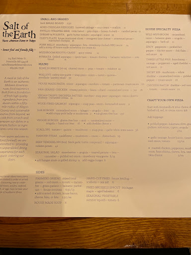 Hidden in rural Southwest Michigan in the tiny little town of Fennville is a restaurant you simply must not miss. Its in an unassuming building near the edge of the towns only "block". Inside, the decor and the ambiance are laid-back; the wait staff frankly amicable, in a typically Midwestern manner. But dont be deceived. This is no backwater small-town diner. Within the walls of this establishment you will find some of the best farm-to-table dining available anywhere. If you ever find yourself even remotely close to Fennville, make a reservation at Salt of the Earth and make the drive. Youll be glad you did.