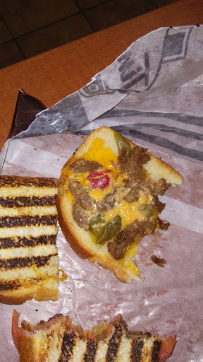 The staff was nice, but seemed overwhelmed and understaffed. The sandwich was nothing, Nothing like advertised. It was awful. They showed a picture of a "steak panini" with chunks of steak, cheese, and veggies. Below is a picture of what we got.