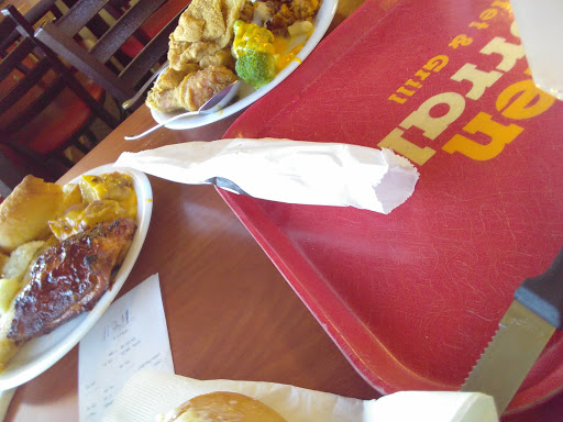 Food wasnt the best the popcorn shrimp had a bad after taste, the broccoli wasnt cooked good , mac n cheese watery, steak wasnt good , but expensive as hell for 4 adults and 1 kid better off saving money and eating at McDonalds, Kids throwing rocks at windows and repeat doing it with people telling them to stop and they didnt, shame on to the parents or whoever was responsible for them rotten bad ass kids I hope you take better care of your children and show them from right to wrong or theyll end up corrupted and in jail , smh , kids needa belt to the ass if theyre going to Golden Corral trying to break windows with rocks smh God bless whoevers car got damaged, this is probably the last time I go to Golden Corral, a rank of 1 outta 10, Im very unsatisfied with this place, if you guys are planning somewhere nice to eat for family try Cracker Barell, Great staff , great food and a good decent price ,