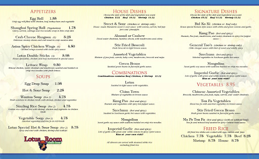 Surprising to find a Chinese restaurant in Genesee County that actually serves authentic Chinese food. The spicy taste is common to foods of mainland China today. Also like restaurants in China, dinner at Lotus Room is a la carte, eg no meal deals where you get the egg roll, soup, veggie, and meat all together. Therefore, its a bit more expensive than what you might pay elsewhere. I think they added the fried rice to the menu to help American taste buds. The white sticky rice tastes authentic. Also you will not find fortune cookies in China but they give them here. The tea doesnt have tea leaves floating in it, another way they Americanize the food. But if you want to prepare for a trip to China or entertain a Chinese visitor with food that they might actually appreciate rather than laugh at, this is the place to go. The restaurant is clean, the food is good. The menu is a little limited and expensive in contrast to Americanized Chinese restaurants so be prepared for that.