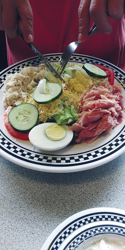 My wife and I order a full order Chef salad and split it. It is way more than two people can eat.