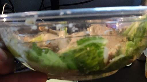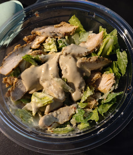 Tasty half chicken Caesar sandwich. Service was friendly as it usually is.