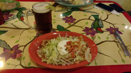 Worst ever Mexican food. Taco Salad had liquid on bottom server said it was from the meat, so I flipped my salad over onto chip basket. Proceeded to remove soggy bottom of fried taco shell ( very small ), only to find burger was flavorless. Friend had Nachos only to find that they too had to flip there Nachos onto a requested to go box. Again flavorless meat. They asked if the Nachos comes with cheese because it didnt state that it did the server said yes, well the only cheese was a bit sprinkled on top. Also be prepared to pay 3.78 for a bottle of bud light. Prices were very high for what turned out to be a small taco salad @$9.71 and Nachos same price and again small size...The beer was good but of course that came bottled...we left our meals if thats what you call them...