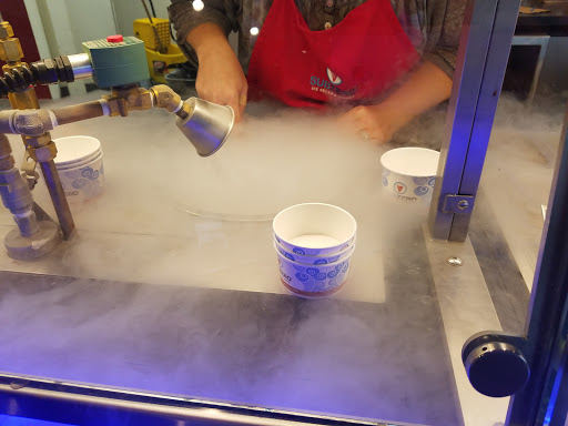 When they freeze the cream, all the smoke comes off the counter. Very cool especially for kids.