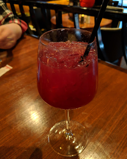 To start, we get the Loaded Tots. Crispy golden tater tots, smothered in a spicy queso that is faintly reminiscent of Thousand Island; giardiniera including pickled jalapenos and carrot strips; scallions; and sweet, sweet bacon. This is the kind of appetizer that you just can’t stop eating. I keep picking at it with my fork...one tot, two tot, three tot, four. Soon, they are all gone. While not exactly a culinary masterpiece, they do satisfy with a playful hearkening back to middle school lunchroom fare. In past, the tots have been prepared differently, so perhaps Bar Louie tweaks the style occasionally? After all that heavy potato and dressing, I decide to mix it up a bit. (Sometimes I order food just to throw a curveball either at my dining companions or my server. Not only do I get the pleasure of shocking someone, I get to try something completely different. It’s like I’m the Minister of Silly Woks.) I have whittled my choices down to a few, so I listen to what everyone else is ordering, then I let fly: Blackberry, Orange & Brie Salad. Now, this is not your normal salad. It’s a heaping helping of chopped greens, covered in a tangy vinaigrette, orange slices, pecans, basil, and bacon. Little wedges of brie stand sentry at the four corners of the plate. But where are the actual blackberries? I flag down the waitress and she explains the blackberries are represented in the dressing. I’m not buying it, and put on my pouty face. She offers to scrounge some up and soon I am happily munching away. (Only later do I re-read the menu and see that, clearly, there should have been blackberries on the salad in the first place.) JC’s Voodoo Chicken looks pretty damn good (he reports the rice is undercooked), and RC’s Southwest Burger sans jalapenos also seems to fit the bill. Our server is brusque and efficient, but not overly friendly. For an impromptu dinner, Bar Louie puts out decent enough tavern food to warrant returning when the weather is warm and the patio is open.