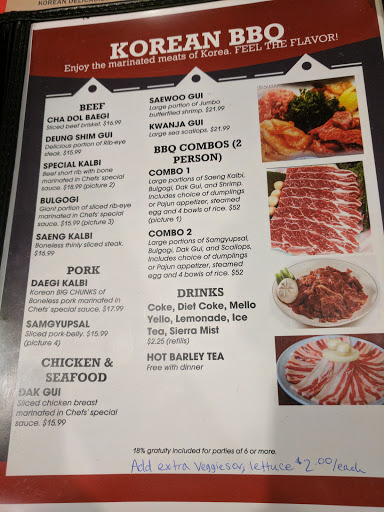Im commenting only on their BBQ table food options. Compared to a number of other Korean bbqs weve been to much of the food here lacked flavor. The sides were actually good but the meat and chicken were unremarkable. I wouldnt go again. That said I saw others with dolsot bibimbop and it looked good. So....maybe worth a try but Id steer clear of the BBQ tables until they improve the flavor of their meats. Other Korean bbqs offer spicy chicken and pork and marinated ribeye thats far more enjoyable. (These are in the Detroit and Novi areas). Ambiance was also lacking and our server seemed disinterested. Theyre still new and hopefully will improve but today was a miss for us.