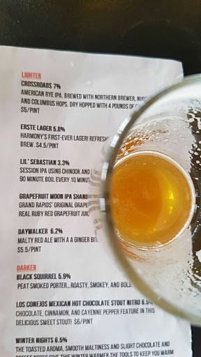 Small place with good beer. They do flights, but you have to get five tasters. We didnt get food. They have some really good beer here. Not all of it was to my taste, but they do some interesting things! The staff is very friendly, and theyre on the Grand Rapids Brewsader list!