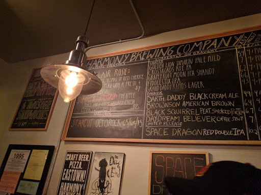 Harmony has very unique beers, and traditional style neopolatin pizzas, But with a twist! High end ingredients and unique combinations add to the appeal. The fact that they source A TON of their food locally is a huge plus too. Just awarded the "snail of approval" for adhering to traditional pizza making. They make all their own soups, sauces, dressings, and dough of course. Everything they cook is done in their wood burning oven. The atmosphere is chill and neighborhood brew pub-ish, and service is by far better than most other breweries around here. Highly recommended.