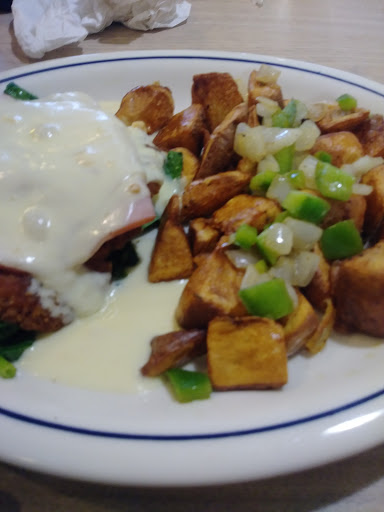 Breakfast food is good anywhere. Honestly. The same omlets are available down the street at Dennys. The customer service on the other hand is horrible. I walked in an noticed its quite busy on a Sunday, the girl at the front desk did not even greet us, just a, how many? and wrote my name down. I stood there and waited for her to give me an estimated time, but she was too busy conversating with the other hostess. After sitting there for a couple of minutes I got up to ask her how much longer. The answer I got wasnt even an answer. Just a not too long, your name is coming up. Never again.