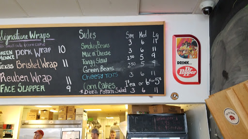 Food: 5+++ stars, Service: 4 stars (see below) Seating: Be ready to fight for a seat at one of the few picnic tables Food: This is a friggin outstanding barbeque spot. They dish out large servings of brisket, pulled pork, chicken and sausage. Ive taken several friends and coworkers here and weve all be raves how good EVERYTHING was. Highly recommend the Brisket Wraps. If your so luck, they occasionally have a smoked corned beef Reuben wrap. Oh..and plan to bring the kids home a 6 pack of their AMAZING corn bread muffins. They go nuts for them