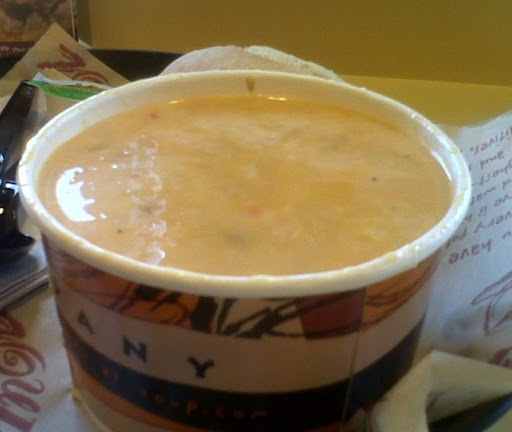 Watch out for the people that come in during lunch break at this location. Sometimes these geniuses will come in and order for their whole office instead of calling ahead so the workers can prepare before the rush. My wait time at this supposed fast-casual restaurant was around half an hour and literally 25 people turned around and left when they heard how long it would take to get a simple cup of soup/sandwich. As for the actual soup, its good but the prices they charge are beyond what its worth for the amount/quality of food you get.