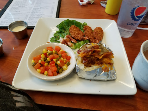 Fast, friendly service with a huge menu and large portions of good food at a reasonable price. Not everything is great, but theres enough good here that I have some great choices each time I come in. Breakfast (served anytime) is substantial and always good, and the chicken Caesar salad is excellent. There arent many places where a family of 4 can eat for under $40 and have everyone happy with the experience...and with leftovers, too.